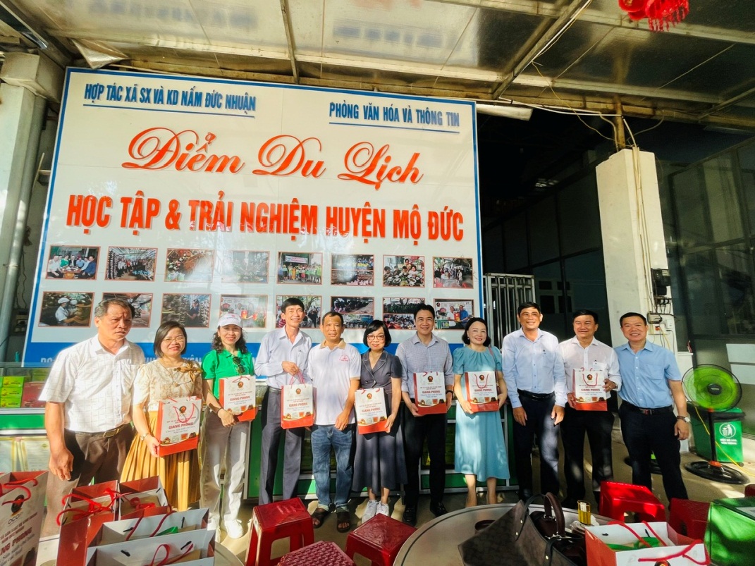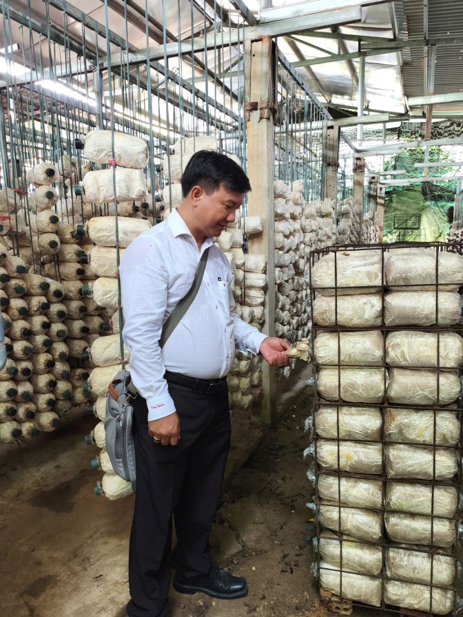 Hình 3: Đoàn công tác tại mô hình Hợp tác xã sản xuất và kinh doanh nấm Đức Nhuận, huyện Mộ Đức |
