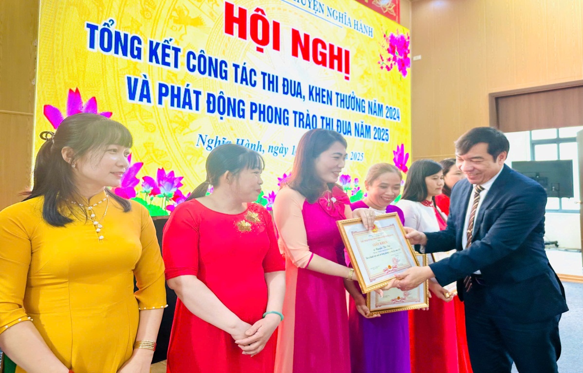 Năm 2025, UBND huyện phát động phong trào thi đua với chủ đề: "Tập trung sắp xếp tổ chức bộ máy bảo đảm tinh gọn, hoạt động hiệu năng, hiệu lực, hiệu quả. Tiếp tục đẩy mạnh chuyển đổi số, cải cách hành chính, cải thiện môi trường đầu tư kinh doanh; huy động, khơi thông và sử dụng hiệu quả các nguồn lực, quyết tâm hoàn thành thắng lợi Nghị quyết Đại hội đại biểu Đảng bộ huyện Nghĩa Hành lần thứ XXII", với những nội dung chủ yếu: Triển khai thực hiện tốt Chỉ thị số 19/CT-TTg ngày 16/7/2021 của Thủ tướng Chính phủ về việc phát động thi đua thực hiện thắng lợi nhiệm vụ phát triển kinh tế - xã hội hàng năm và Kế hoạch 5 năm (2021-2025) theo Nghị quyết Đại hội đại biểu toàn quốc lần thứ XIII của Đảng; Chỉ thị số 14/CT-UBND ngày 06/8/2021 của Chủ tịch UBND tỉnh về việc phát động phong trào thi đua thực hiện thắng lợi nhiệm vụ phát triển kinh tế - xã hội hàng năm và Kế hoạch 5 năm (2021-2025) theo Nghị quyết Đại hội đại biểu toàn quốc lần thứ XIII của Đảng và Nghị quyết Đại hội đại biểu Đảng bộ tỉnh lần thứ XX; Đợt thi đua cao điểm, lập thành tích chào mừng 50 năm giải phóng huyện Nghĩa Hành, giải phóng tỉnh Quảng Ngãi; đại hội đảng các cấp tiến tới Đại hội đại biểu Đảng bộ huyện lần thứ XXIII, Đại hội đại biểu Đảng bộ tỉnh lần thứ XXI và Đại hội đại biểu toàn quốc lần thứ XIV của Đảng nhiệm kỳ 2025 - 2030; bầu cử đại biểu Quốc hội và đại biểu Hội đồng nhân dân các cấp nhiệm kỳ 2026 - 2031; Huyện phấn đấu hoàn thành các chỉ tiêu về phát triển kinh tế: tổng giá trị sản xuất tăng 9,01%; tổng thu ngân sách trên địa bàn tăng 5% so với kế hoạch của tỉnh giao; Hoàn thành xây dựng 01 xã đạt chuẩn nông thôn mới nâng cao. Tập trung và tăng cường hướng dẫn, hỗ trợ và tháo gỡ kịp thời, dứt điểm các khó khăn, vướng mắc cho doanh nghiệp và người dân về sản xuất kinh doanh, cải thiện môi trường đầu tư kinh doanh.