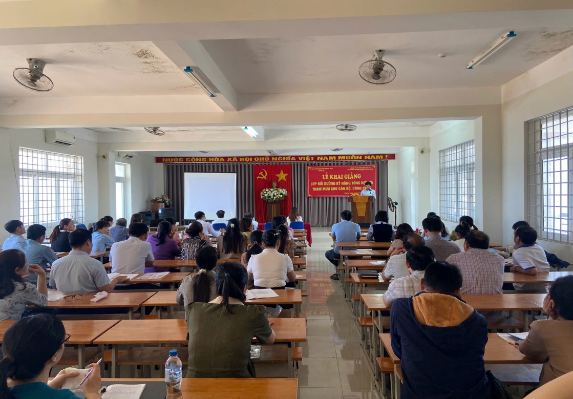 Sở Nội vụ phối hợp với Công ty cổ phần đào tạo và bồi dưỡng nguồn nhân lực Đà Nẵng tổ chức Lớp bồi dưỡng kỹ năng tổng hợp và tham mưu cho cán bộ, công chức cho hơn 100 học viên là cán bộ, công chức, viên chức và cán bộ, công chức cấp xã đang công tác tại các cơ quan, đơn vị, địa phương trên địa bàn tỉnh Quảng Ngãi.