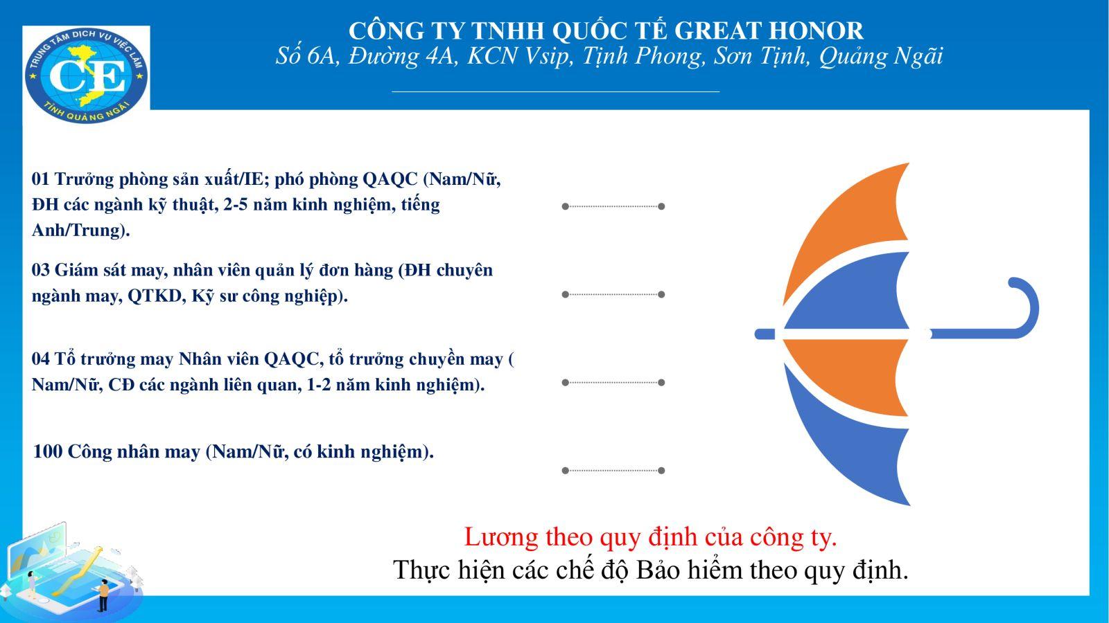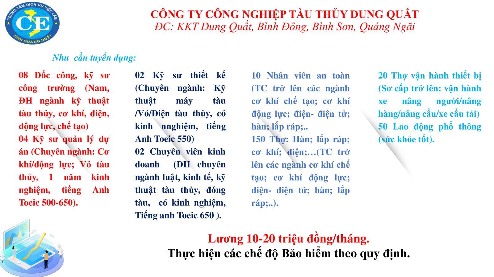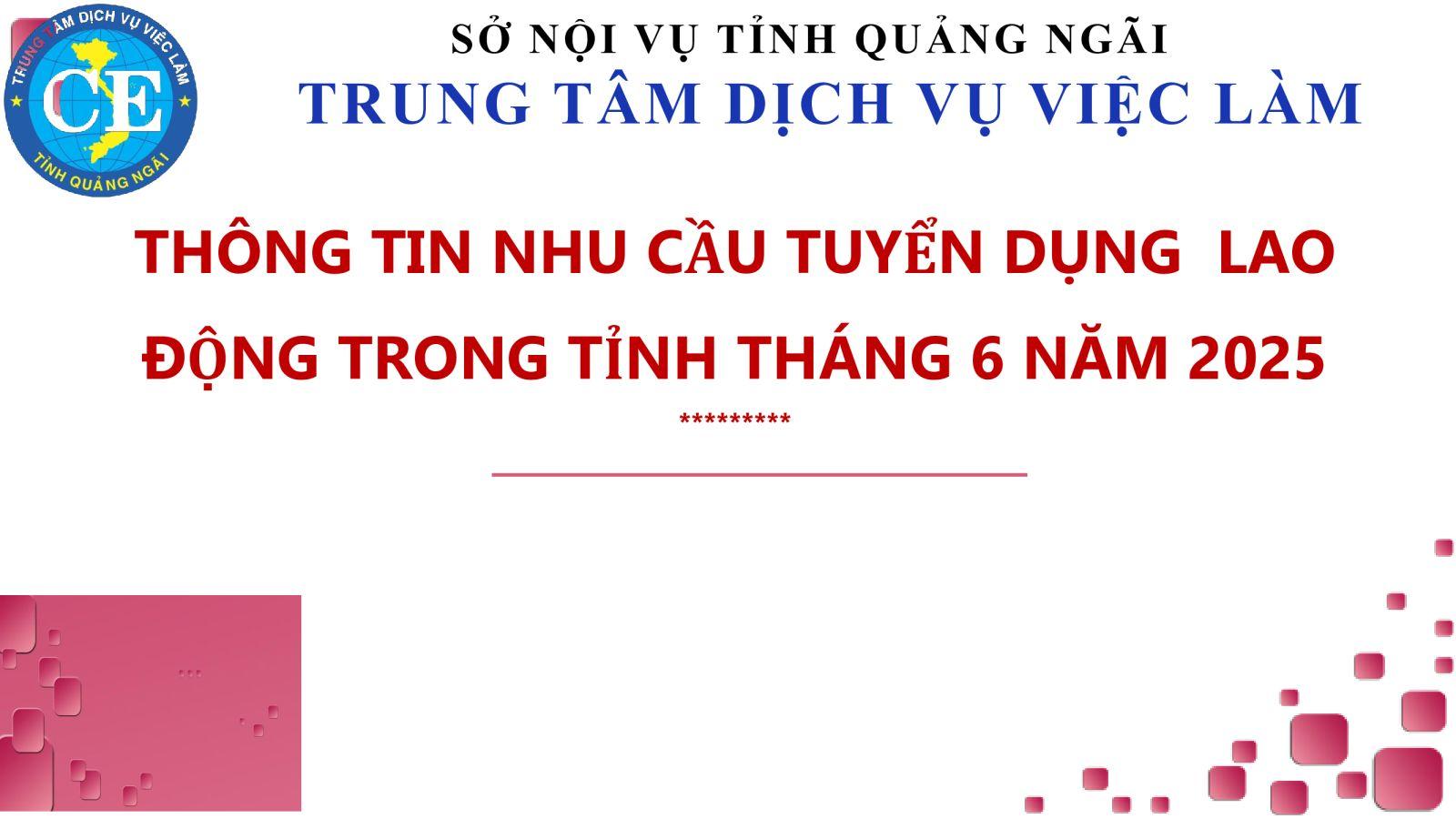Thông tin tuyển dụng lao động trên địa bàn tỉnh Quảng Ngãi tháng 6 năm 2025