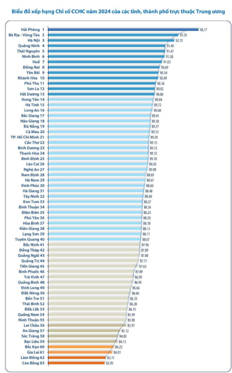 Biểu đồ xếp hạng chỉ số cải cách hành chính năm 2024 của các tỉnh, thành phố trực thuộc Trung ương