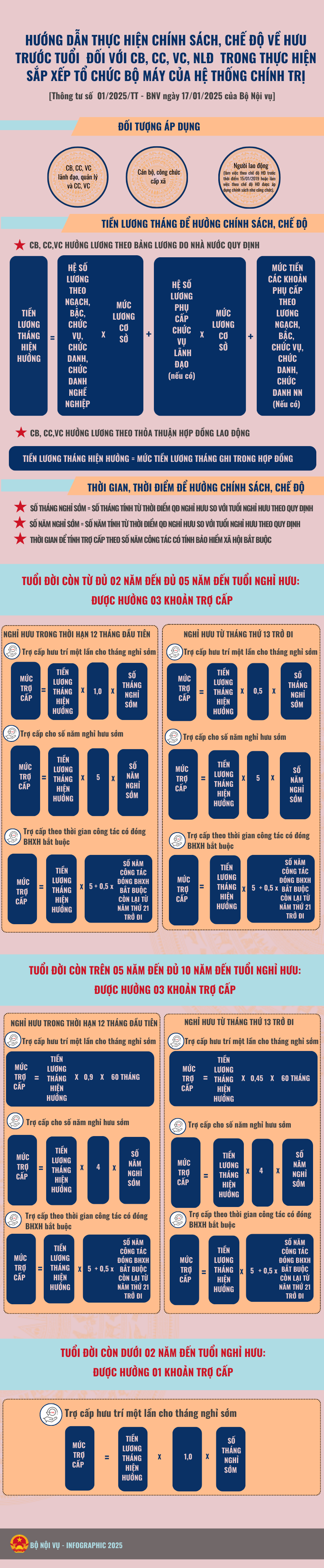 INFOGRAPHIC: Hướng dẫn thực hiện chính sách, chế độ đối với cán bộ, công chức, viên chức và người lao động về hưu trước tuổi