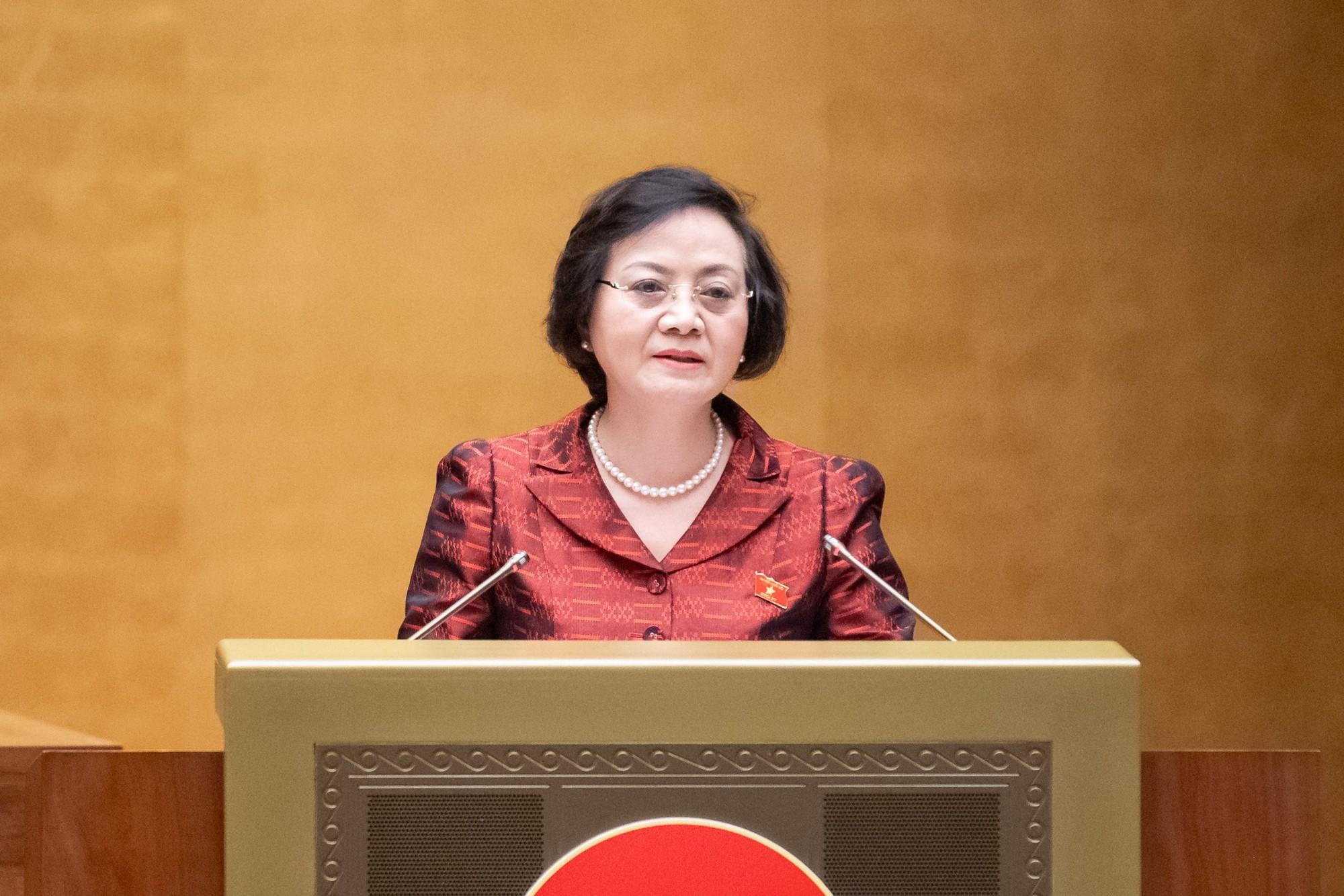 Bộ trưởng Phạm Thị Thanh Trà trình bày Báo cáo tiếp thu, giải trình, chỉnh lý dự thảo Luật Cán bộ, công chức (sửa đổi) (ảnh: Phạm Thắng)