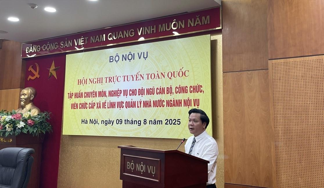 Thực hiện Kết luận số 183-KL/TW, ngày 01/8/2025 của Bộ Chính trị, Ban Bí thư về tích cực triển khai vận hành mô hình chính quyền địa phương 02 cấp, chuyển mạnh cấp cơ sở sang chủ động nắm, điều hành kinh tế - xã hội, quốc phòng an ninh, ngày 09/8/2025, Bộ Nội vụ tổ chức Hội nghị trực tuyến toàn quốc tập huấn chuyên môn, nghiệp vụ cho đội ngũ cán bộ, công chức, viên chức cấp xã về lĩnh vực quản lý nhà nước ngành Nội vụ.