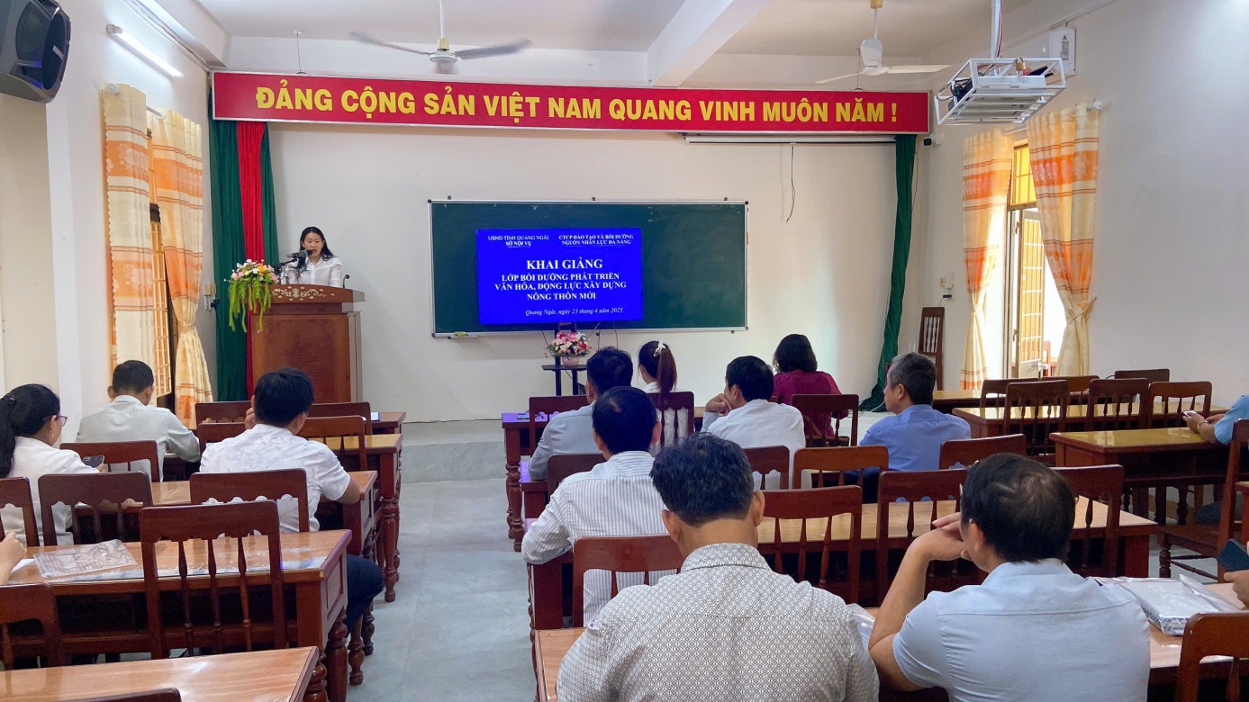 Sở Nội vụ phối hợp với Công ty cổ phần đào tạo và bồi dưỡng nguồn nhân lực Đà Nẵng tổ chức Lớp bồi dưỡng phát triển văn hóa, động lực xây dựng nông thôn mới cho hơn 50 học viên là cán bộ, công chức cấp xã đang công tác tại UBND các huyện, thị xã, thành phố trên địa bàn tỉnh Quảng Ngãi từ ngày 23/4/2025 đến ngày 25/4/2025 theo hình thức học tập trung tại Trung tâm chính trị thành phố Quảng Ngãi.