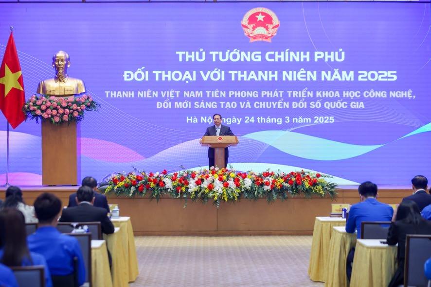Thủ tướng chia sẻ, gần đây, Bộ Chính trị ban hành Nghị quyết 57-NQ/TW về đột phá phát triển khoa học công nghệ, đổi mới sáng tạo, chuyển đổi số quốc gia; Quốc hội đã ban hành Nghị quyết 193/2025/QH15 về thí điểm một số cơ chế, chính sách đặc biệt; Chính phủ đã ban hành Nghị quyết số 03/NQ-CP về Chương trình hành động thực hiện Nghị quyết 57-NQ/TW. Việc chọn chủ đề đối thoại năm 2025 là "Thanh niên Việt Nam tiên phong phát triển khoa học công nghệ, đổi mới sáng tạo và chuyển đổi số quốc gia", có sự phát triển phù hợp, chính xác, kịp thời, đồng thời mang nhiều tính kế thừa chủ đề các năm trước.