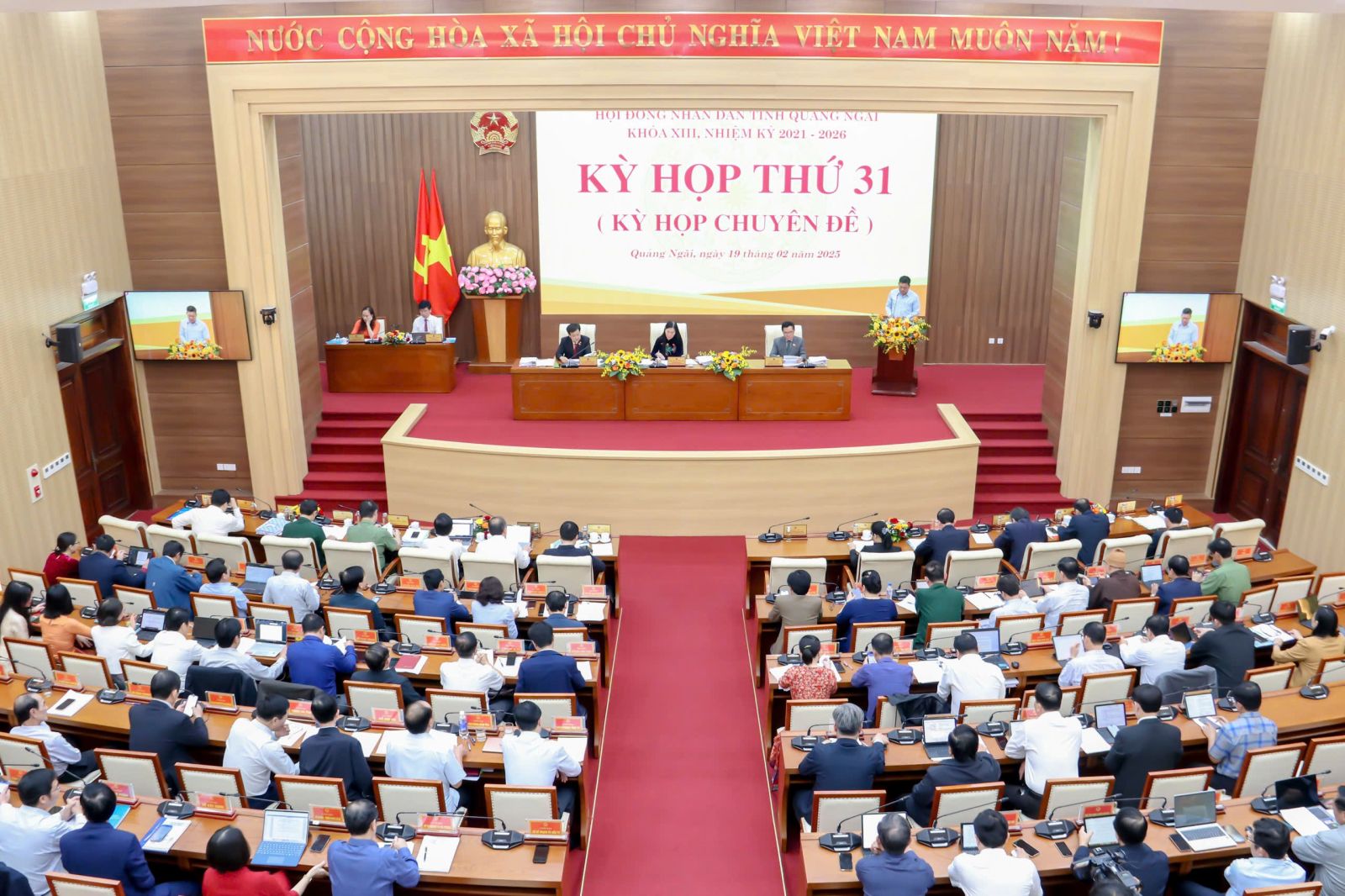 Chiều 19-2, Ủy viên BCH Trung ương Đảng, Bí thư Tỉnh ủy, Chủ tịch HĐND tỉnh Bùi Thị Quỳnh Vân; Phó Chủ tịch Thường trực HĐND tỉnh Nguyễn Cao Phúc; Phó Chủ tịch HĐND tỉnh Nguyễn Tấn Đức chủ trì kỳ họp thứ 31, HĐND tỉnh, nhiệm kỳ 2021-2026 để xem xét, thảo luận, quyết định một số nội dung quan trọng thuộc thẩm quyền.