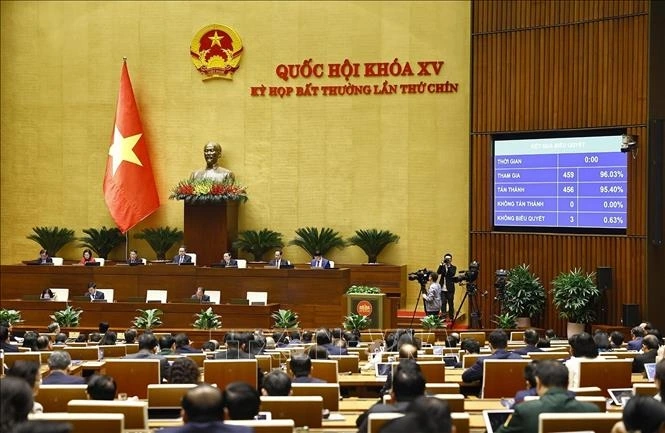 Quốc hội biểu quyết thông qua Nghị quyết của Quốc hội quy định về xử lý một số vấn đề liên quan đến sắp xếp tổ chức bộ máy nhà nước, ngày 19/2/2025. Ảnh: Doãn Tấn/TTXVN