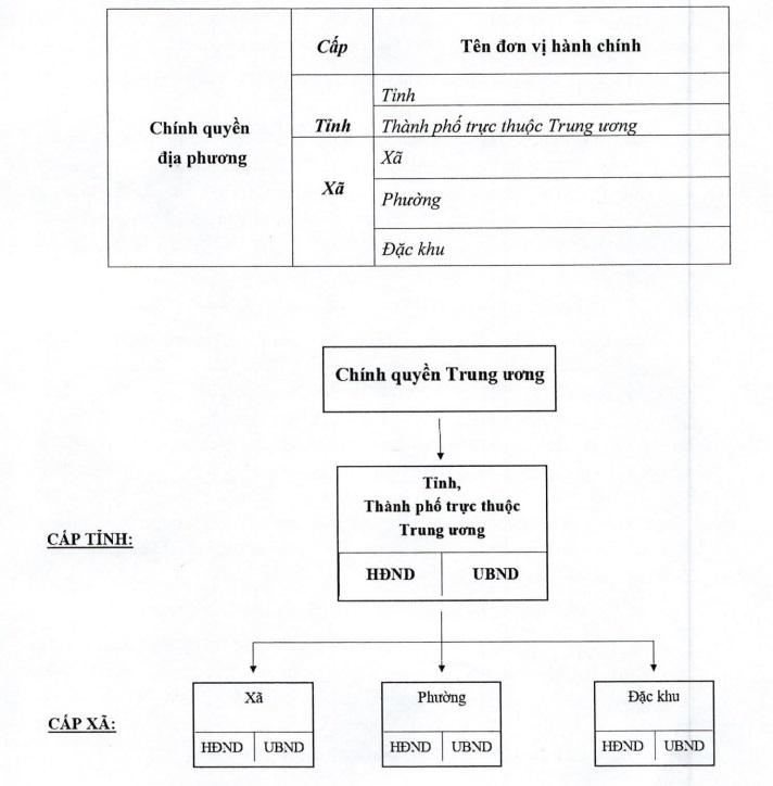 Phương án tổ chức chính quyền địa phương 02 cấp gồm: (1) Cấp tỉnh gồm tỉnh, thành phố trực thuộc trung ương; (2) Cấp xã gồm xã, phường (trong đất liền) và đặc khu (ở hải đảo). Theo đó, bỏ ĐVHC cấp huyện và thị trấn.
