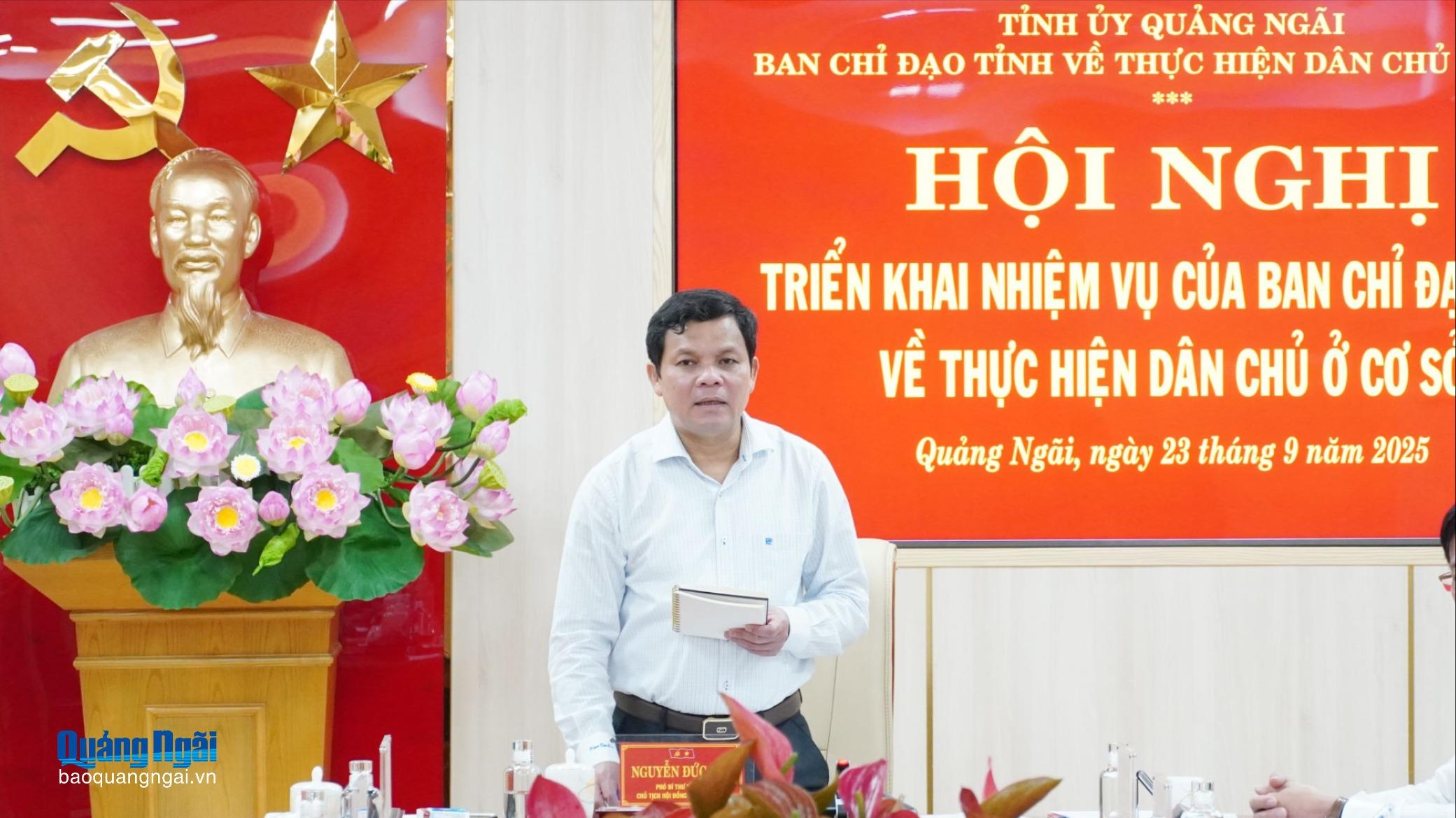 Chiều 23/9, Phó Bí thư Tỉnh ủy, Chủ tịch HĐND tỉnh Nguyễn Đức Tuy - Trưởng Ban Chỉ đạo tỉnh về thực hiện dân chủ ở cơ sở, chủ trì Hội nghị triển khai nhiệm vụ của Ban Chỉ đạo.
