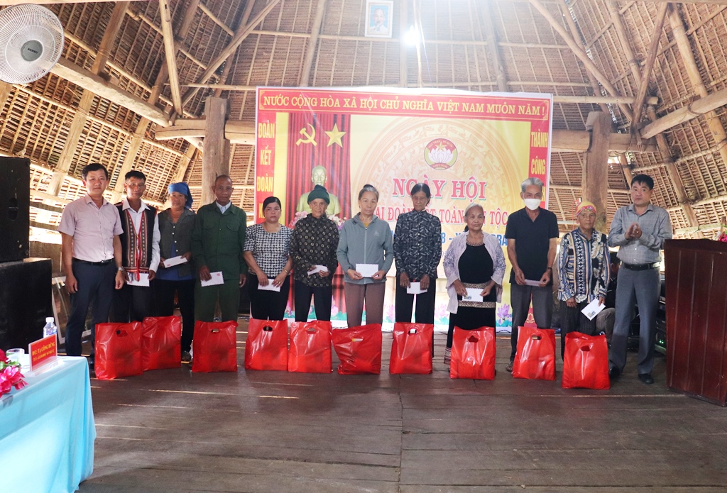 Nhân dịp này, đồng chí Giám đốc Sở Nội vụ tỉnh Quảng Ngãi đã trao tặng 05 phần quà của UBMTTQVN tỉnh cho 5 em học sinh có hoàn cảnh khó khăn của trường THCS Đăk Ruồng, xã Kon Braih. Mỗi phần quà trị giá 500 ngàn đồng; Đảng ủy – HĐND-UBND-UBMTTQVN xã tặng 27 suất quà của cho 27 hộ gia đình nghèo, cận nghèo, gia đình chính sách trên địa bàn thôn.