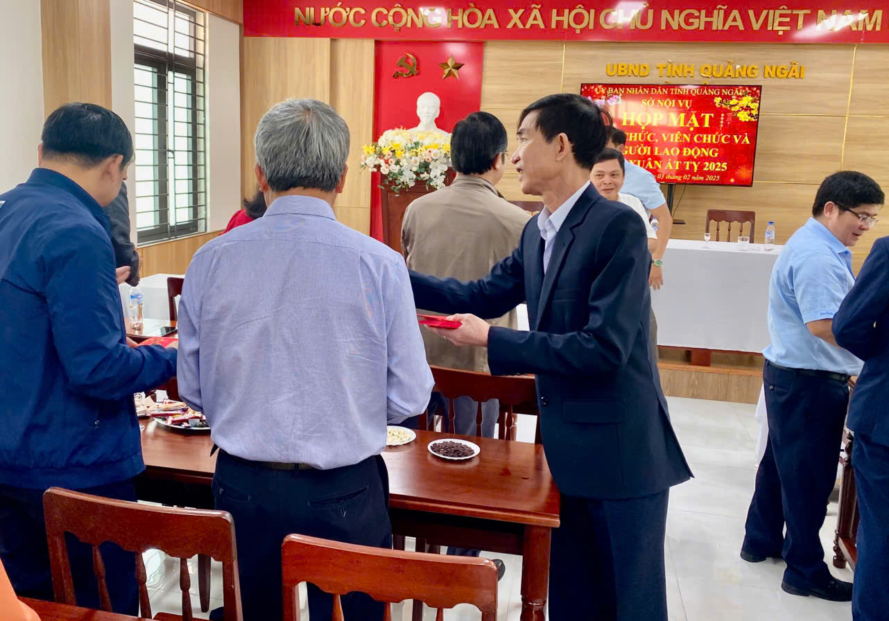 Dự Buổi gặp mặt có các Phó Giám đốc Sở: Hà Văn Tính, Võ Xuân Hòa cùng toàn thể công chức, viên chức và người lao động của Sở. Trong thời gian nghỉ Tết Nguyên đán Ất Tỵ năm 2025 (trước, trong và sau Tết) Sở Nội vụ thực hiện nghiêm túc Chỉ thị số 40-CT/TW ngày 11/12/2024 của Ban Bí thư về việc tổ chức Tết Ất Tỵ năm 2025 và Chỉ thị số 45/CT-TTg của Thủ tướng Chính phủ: Về việc tăng cường các biện pháp bảo đảm đón Tết Nguyên đán Ất Tỵ năm 2025 vui tươi, lành mạnh, an toàn, tiết kiệm; Sở đã quán triệt công chức, viên chức, người lao động thực hiện nghiêm túc Quy định của Ban Chấp hành Trung ương về trách nhiệm nêu gương của cán bộ, đảng viên và thực hiện tốt công tác thực hành tiết kiệm, chống lãng phí; thực hiện nghiêm chế độ trực Tết và chế độ thông tin, báo cáo trong dịp nghỉ Tết Nguyên đán Ất Tỵ năm 2025, phân công lãnh đạo, công chức, viên chức, người lao động trực cơ quan theo quy định. Toàn thể công chức, viên chức, người lao động của Sở Nội vụ đón tết năm Ất tỵ 2025 đảm bảo an toàn, không có trường hợp vi phạm Nghị định 168/2024/NĐ-CP ngày 26/12/2024 của Chính phủ quy định xử phạt vi phạm hành chính về trật tự, an toàn giao thông trong lĩnh vực giao thông đường bộ;…