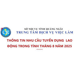 Thứ hai, 04/08/2025 | 13:59 A- A A+ | THÔNG TIN TUYỂN DỤNG LAO ĐỘNG TRÊN ĐỊA BÀN TỈNH THÁNG 8 NĂM 2025 Lưu