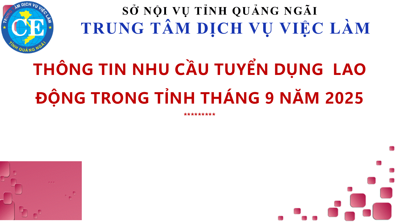 THÔNG TIN TUYỂN DỤNG LAO ĐỘNG TRÊN ĐỊA BÀN TỈNH THÁNG 9 NĂM 2025