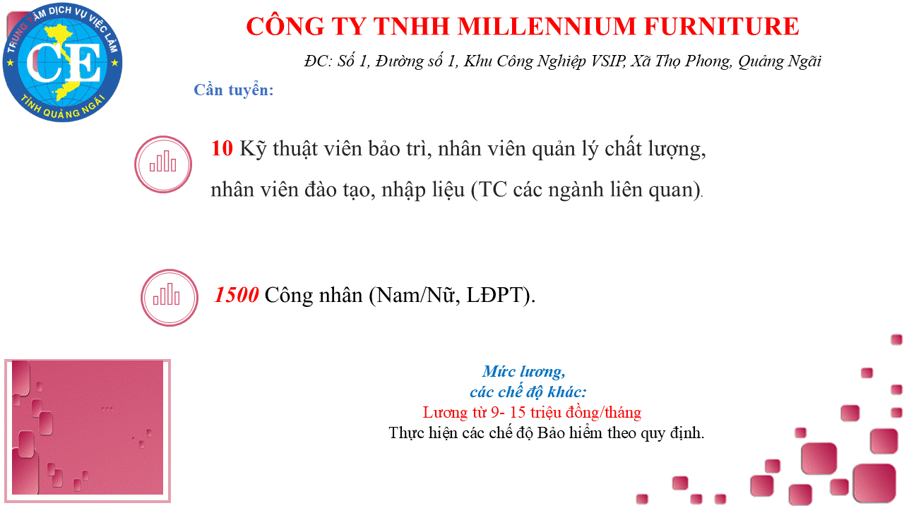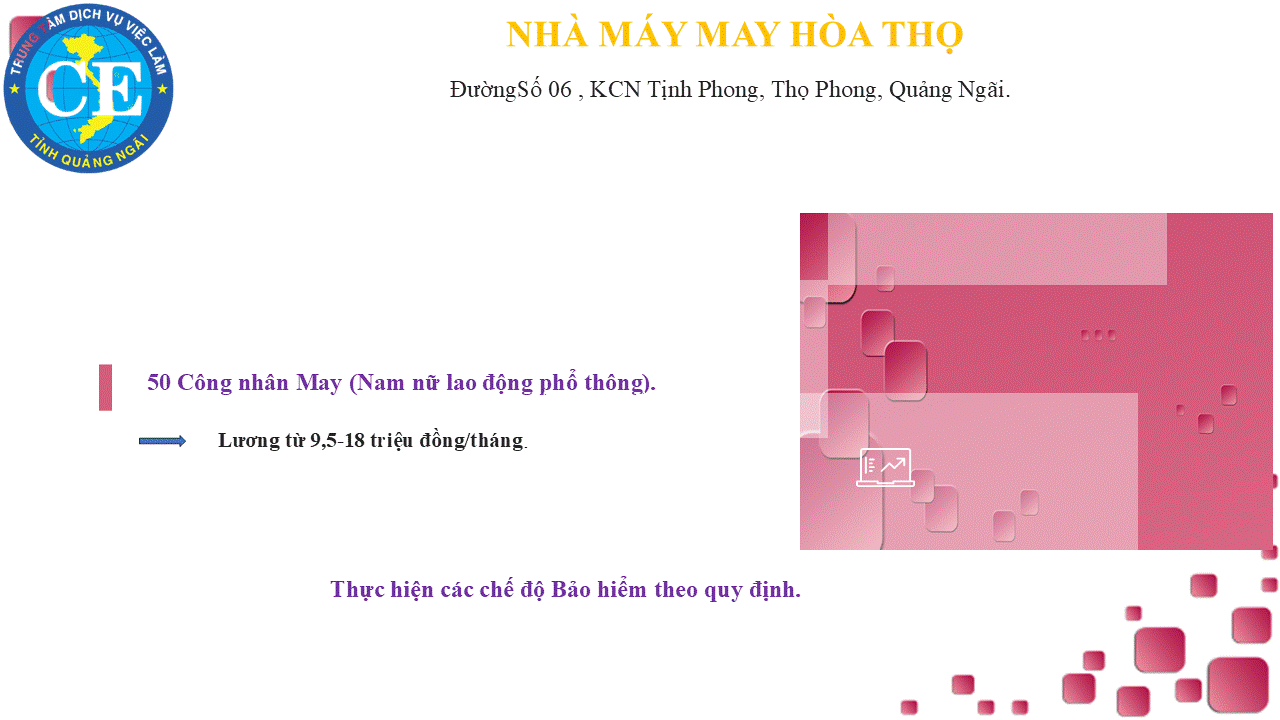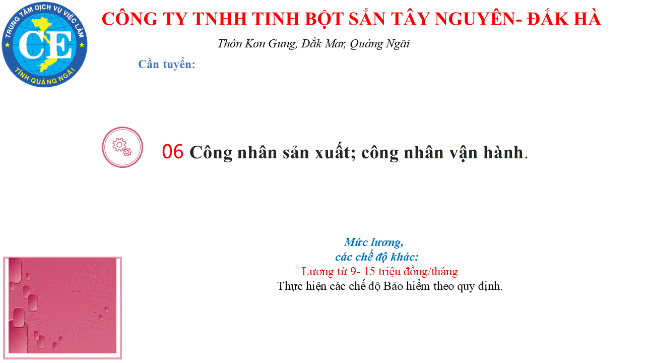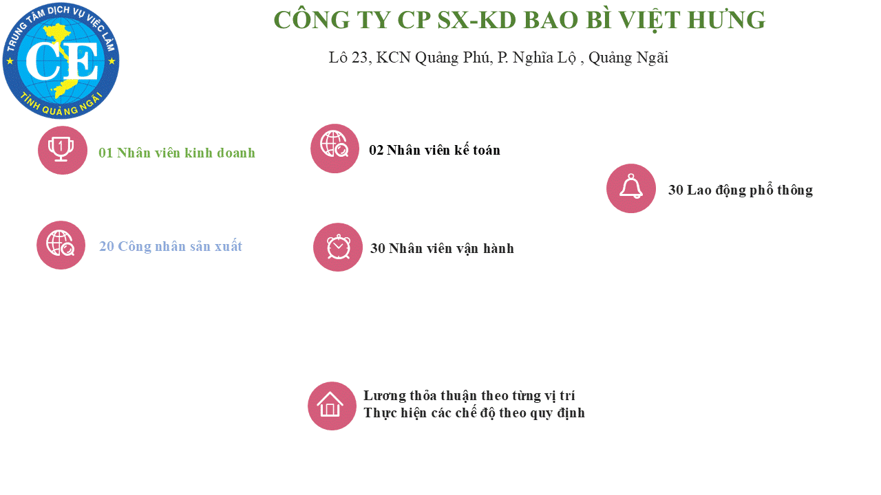 Mọi chi tiết xin liên hệ: Phòng Thị trường lao động - Việc làm và Đào tạo -Trung tâm Dịch vụ việc làm Quảng Ngãi .